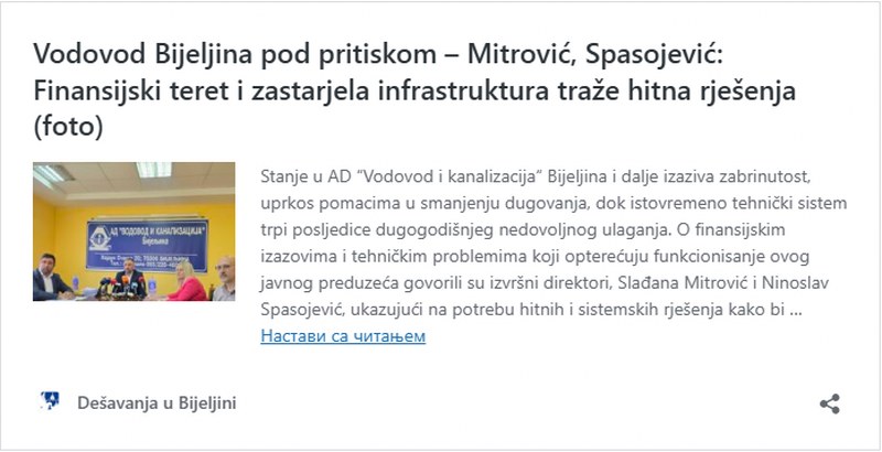 На крају је поручио да је неопходно пронаћи дугорочно рјешење, прије свега кроз корекцију цијене воде и стабилизацију пословања, како би се обезбиједило уредно водоснабдијевање грађана.